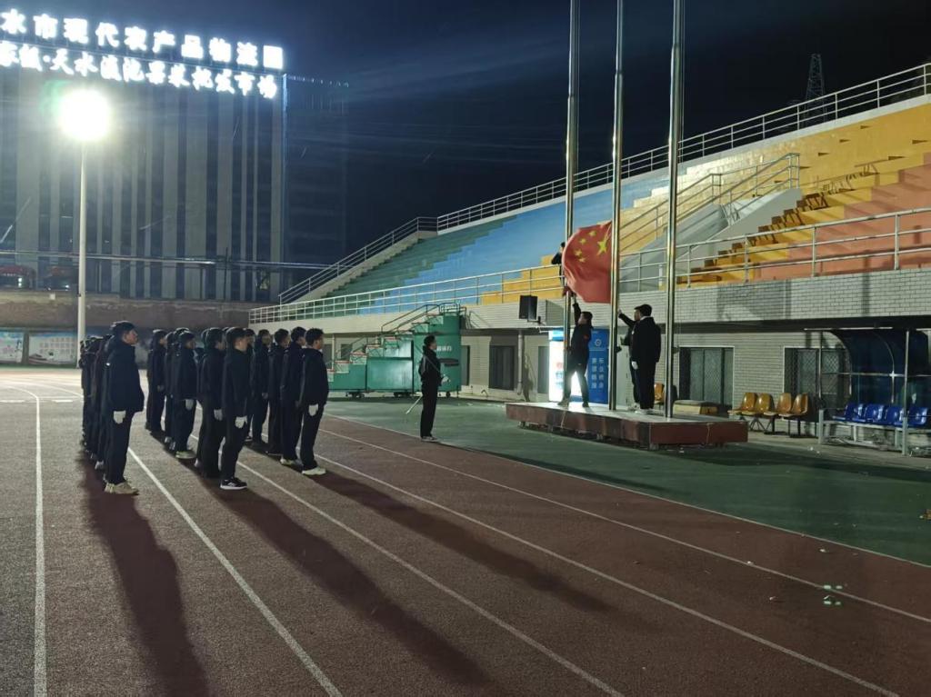 11月24日清晨6点,核工程与技术学院全体同学集结于操场,一场庄重的升旗仪式在初冬晨光中拉开帷幕。早6点25分前,各班级已按指定位置整齐列队,旗手、护旗手在升旗台旁待命,细致完成国旗与升旗设备的检查,现场秩序井然。
