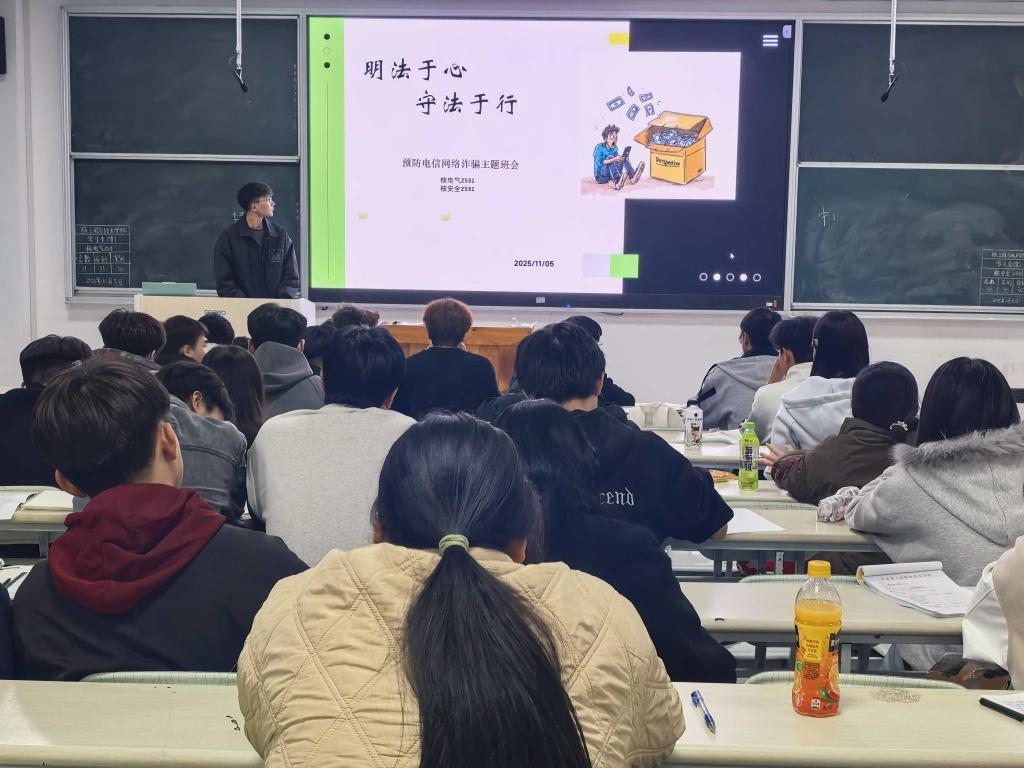 11月5日,核学院全院学生在阶梯五,六教室展开以“明法于心,守法于行”主题班会,此次班会让同学们增强法律意识,维护校园安全,知法守法懂法。班主任王老师为主讲人。