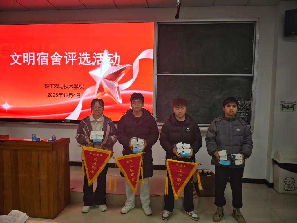 12月4日,为加强学生宿舍文化建设,营造整洁、安全、和谐的住宿环境,核学院在教室成功举办了文明宿舍评选活动。本次活动旨在表彰先进,树立典范,进一步推动学生宿舍的文明建设与自我管理。