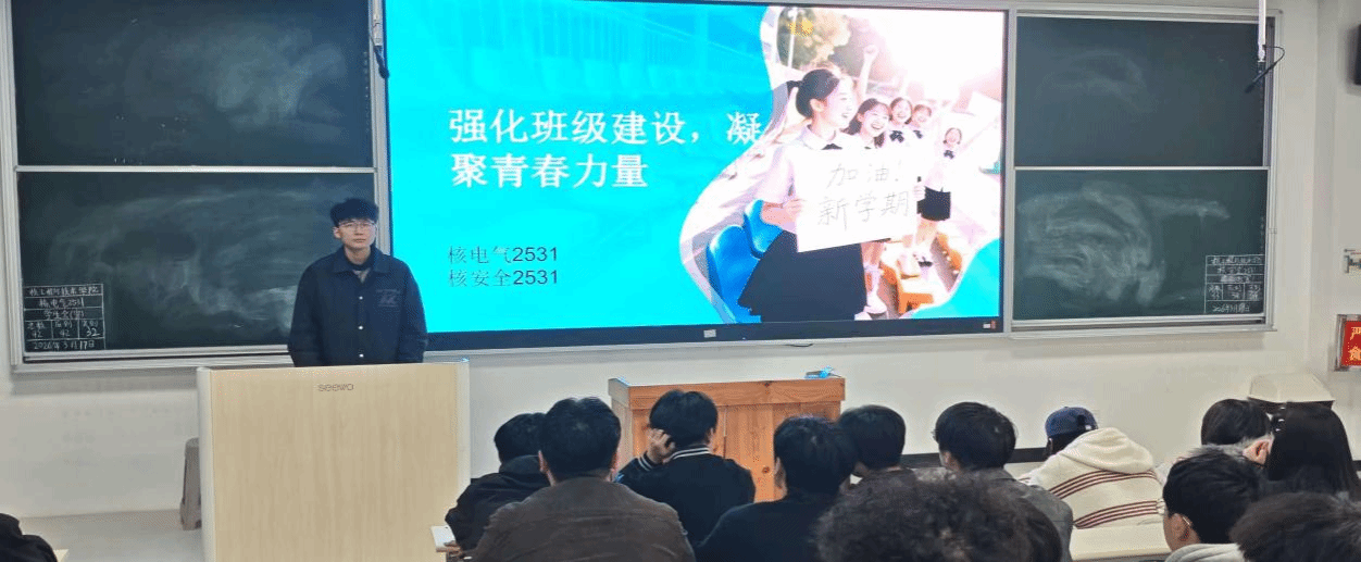 为强化班级建设,凝聚青春力量,核学院于3月22日在阶梯教室5召开主题班会。班级是学生成长的小家庭,一个团结、向上、温暖的集体,不仅能带来友谊,更是成长路上最坚实的后盾。