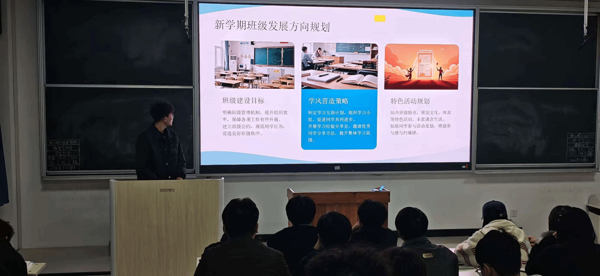 本次班会进一步深化了同学们对班级建设的理解,增强了集体归属感与凝聚力,为构建温暖互助、积极向上的班级氛围奠定了坚实基础。