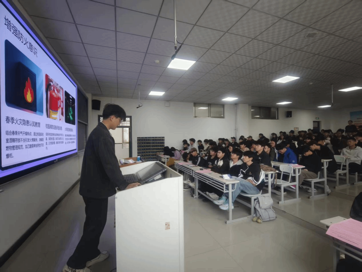 班会伊始,主讲人向同学们明确,校园是人员高度密集的场所,每一位同学都是校园安全的守护者,消防安全无小事,筑牢安全防线是所有人的共同责任。春季气候干燥,草木易燃,加之校园内教学楼、宿舍、实训室等场所电器设备使用频繁,稍有不慎就可能引发火灾事故。从过往校园火灾案例来看,违规使用大功率电器、随意乱扔烟头、私拉乱接电线、实训室操作不规范等行为,都是引发校园火灾的主要诱因,这些本可避免的疏忽,往往会造成无法挽回的损失。