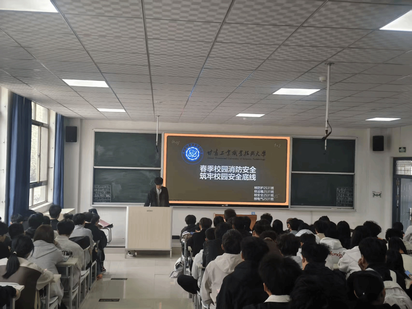 为进一步提升学生消防意识与防范能力,筑牢校园安全防线,近日,核学院各班在阶梯5教室召开校园消防安全主题班会,将引导同学们认清春季校园中常见的火灾隐患,掌握必要的消防知识和逃生技能,增强安全防范意识。班干部为此次主讲人。