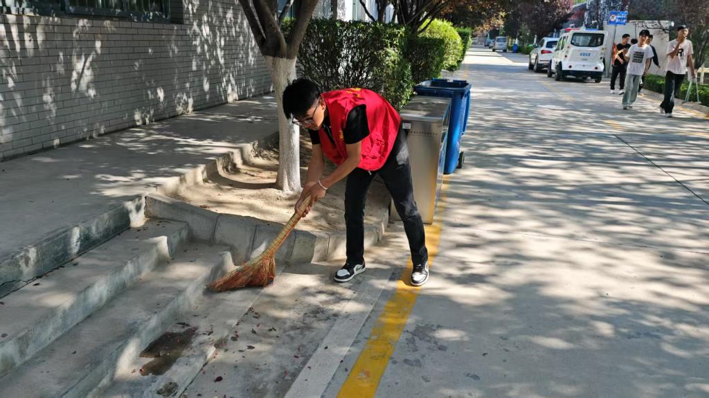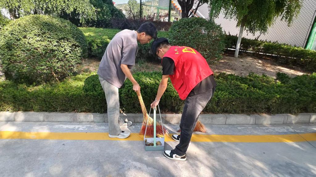 活动中,同学们分工明确、干劲十足。有的手持扫帚清扫道路落叶与杂物,有的弯腰捡拾绿化带中的垃圾,有的仔细擦拭宣传栏、座椅等公共设施。即使汗水浸湿衣衫,同学们依旧热情不减。经过同学们的共同努力,校园环境焕然一新,道路整洁干净,设施明亮如新。